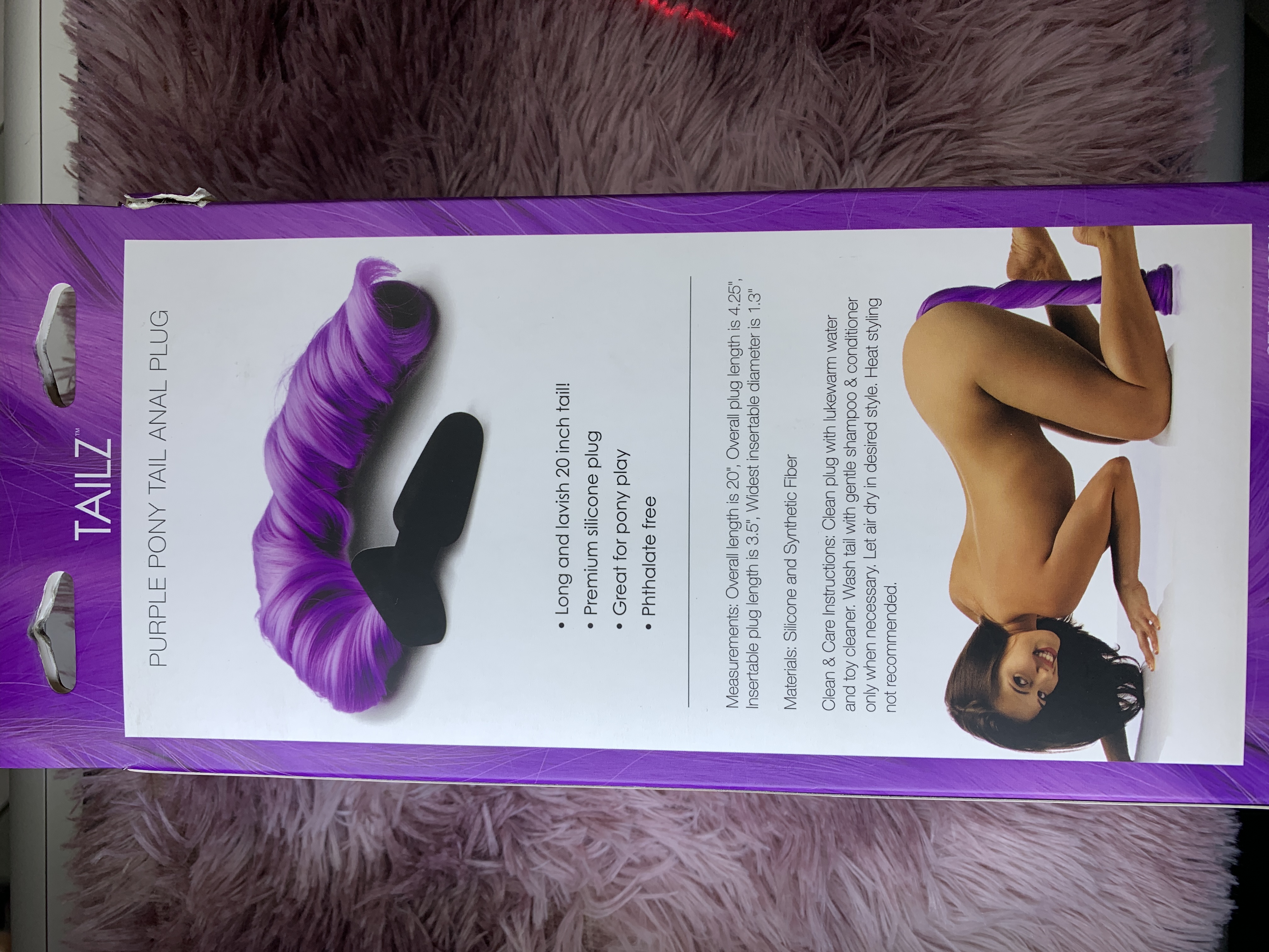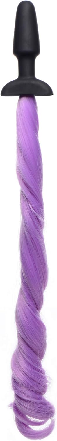 ¡Disfruta de la excitante acción equina con un color divertido y coqueto con esta cola de caballo suave y voluminosa! ¡Trénzala, cepíllala, muévela y presume! La cola es de 50 cm de fibra sintética, rematada con un tapón de silicona suave y sin ftalatos. Su clásica forma de pala se inserta fácilmente, con una base acampanada para mantenerla firmemente en su lugar. Medidas: 61 cm de largo total, 8,9 cm insertables, 3,3 cm de diámetro. Material: Silicona, fibra sintética. Color: Morado. Nota: No se recomienda el peinado con calor.